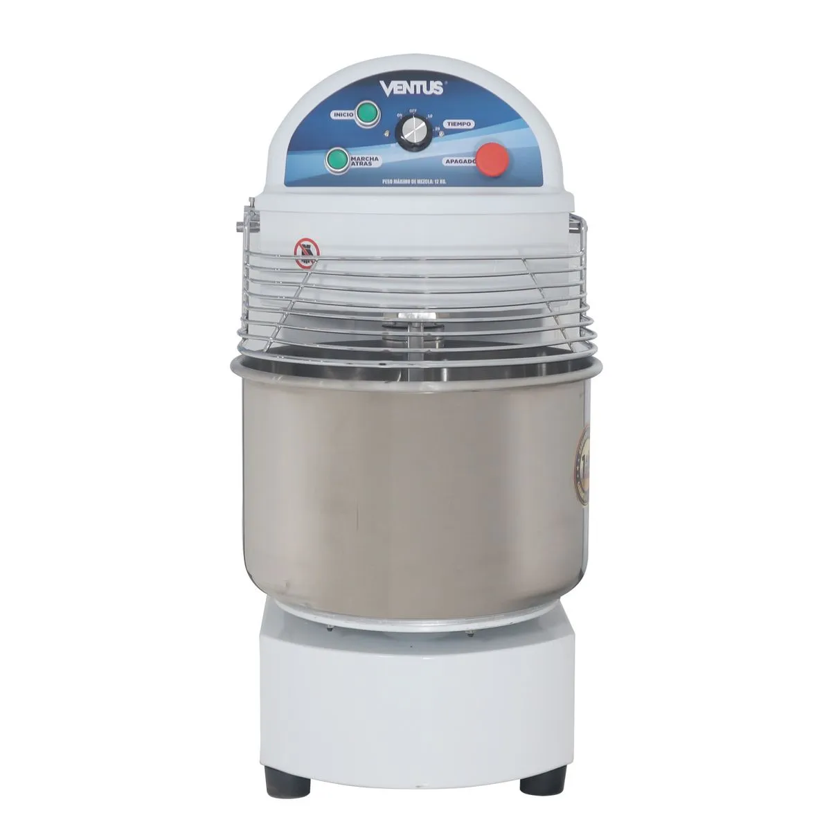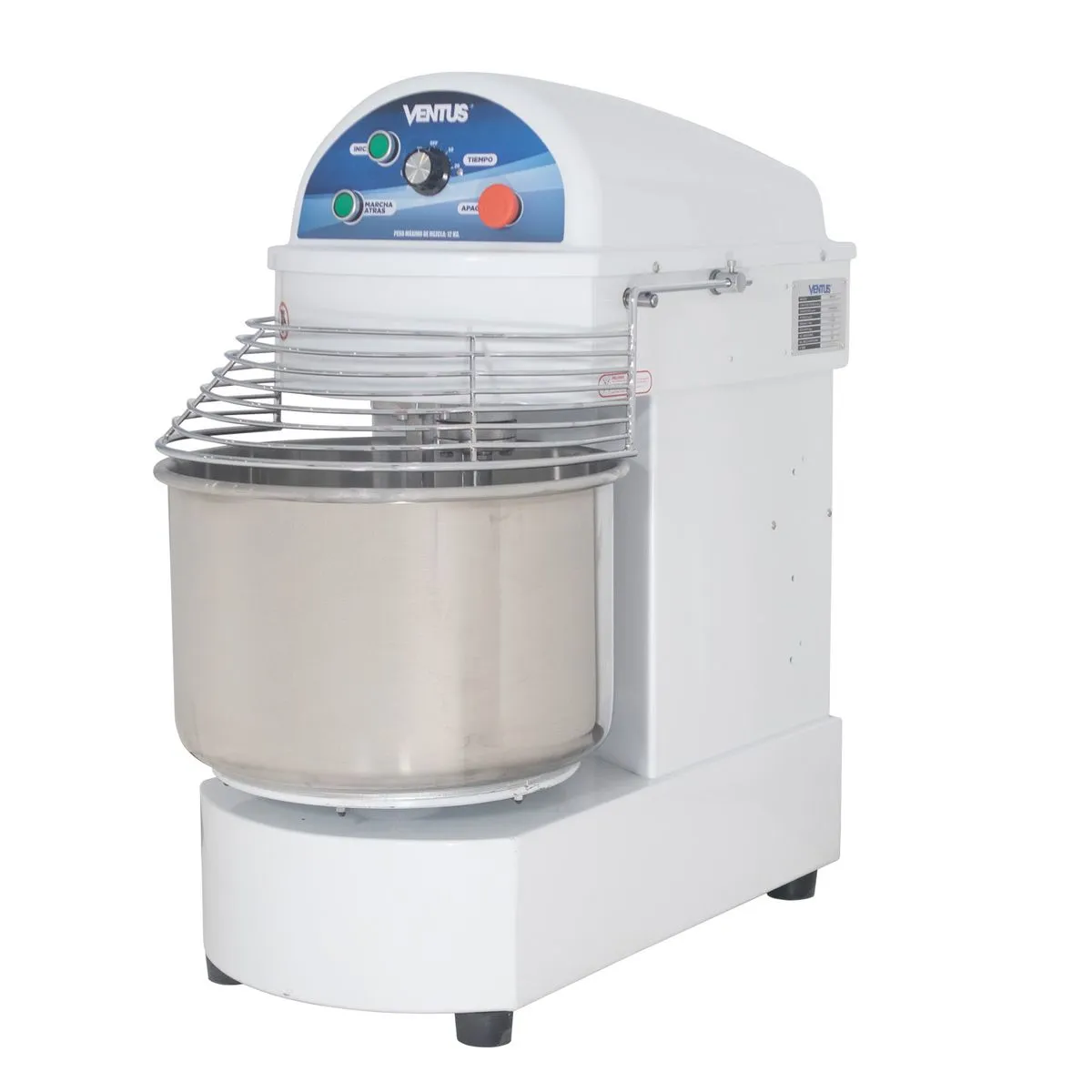 Amasadora industrial para 12kg de masa. Ideal para comenzar tu emprendimiento o para reforzar tus lineas de amasado. Construida en acero inoxidable con terminaciones de esmaltado al horno. Su bowl es de acero inoxidable reforzado además de contar con una rejilla de protección, también confeccionada en acero; cuenta además, con un timer de 60 minutos, todo pensado en un producto que te acompañe en tus proyectos. Además incluye un timer de máximo 60 minutos para que tengas el total control sobre tus preparaciones!