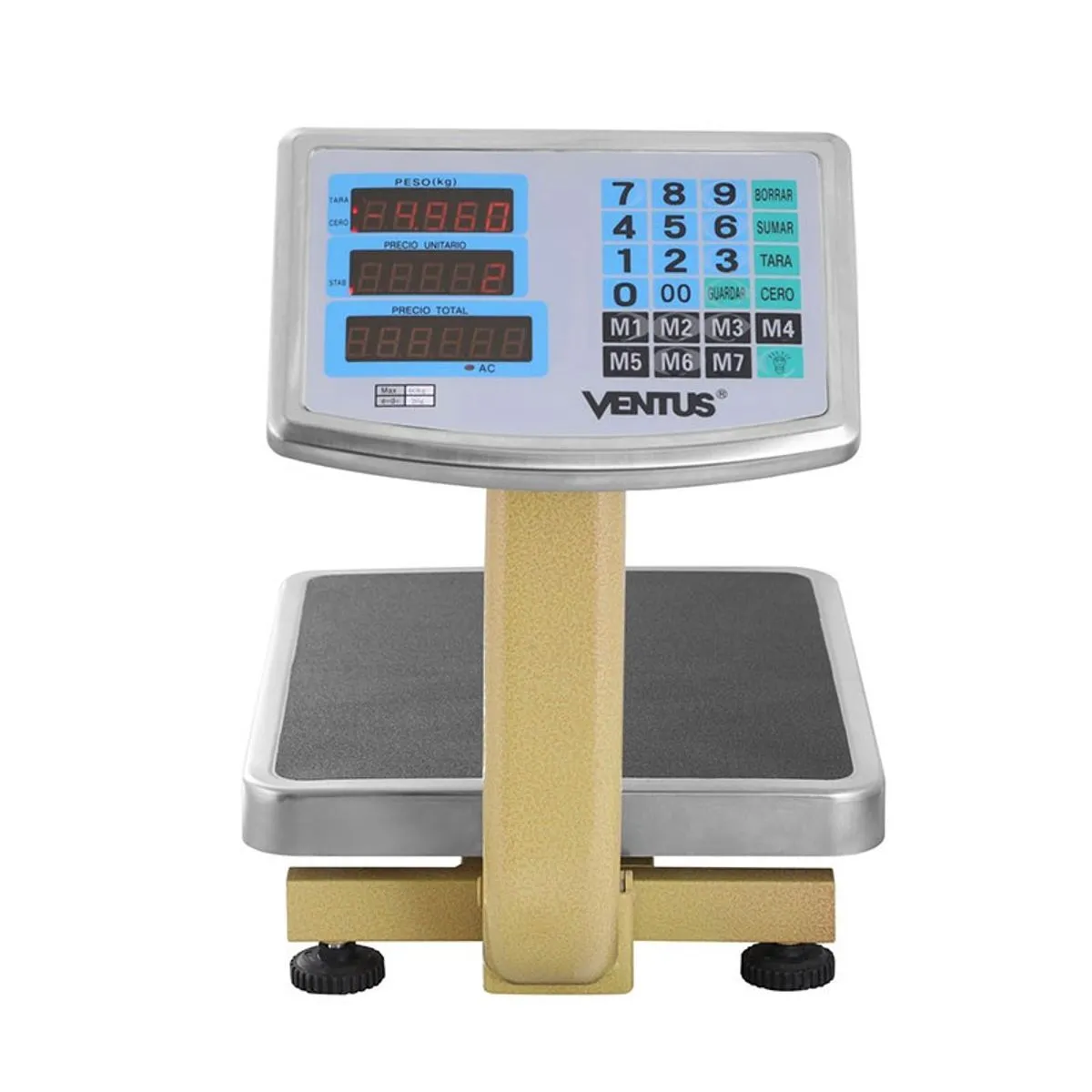 Ideal para comercios como almacenes y supermercados, esta balanza digital soporta hasta 60 kg de peso máximo. Cuenta con plataforma de acero inoxidable resistente y duradera, pantalla LED/LCD iluminada con indicador de precio y visor aéreo incluido para una mejor visibilidad al cliente. Funciona con batería recargable, ofrece display de nivelación y una graduación mínima de 10 gramos para mediciones precisas. Fácil de usar y confiable para tu negocio.