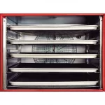 El equipo está diseñado con un sistema de conexión al agua para el humidificador, garantizando la humedad adecuada durante el proceso de cocción. Bajo consumo de gas y una temperatura máxima de trabajo de 220°C.