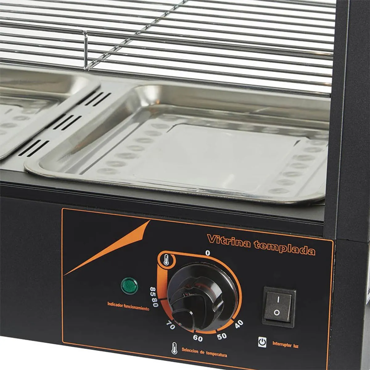 Incluye iluminación interna y 2 repisas de barras de acero, que permiten organizar y exhibir eficientemente distintos productos calientes.