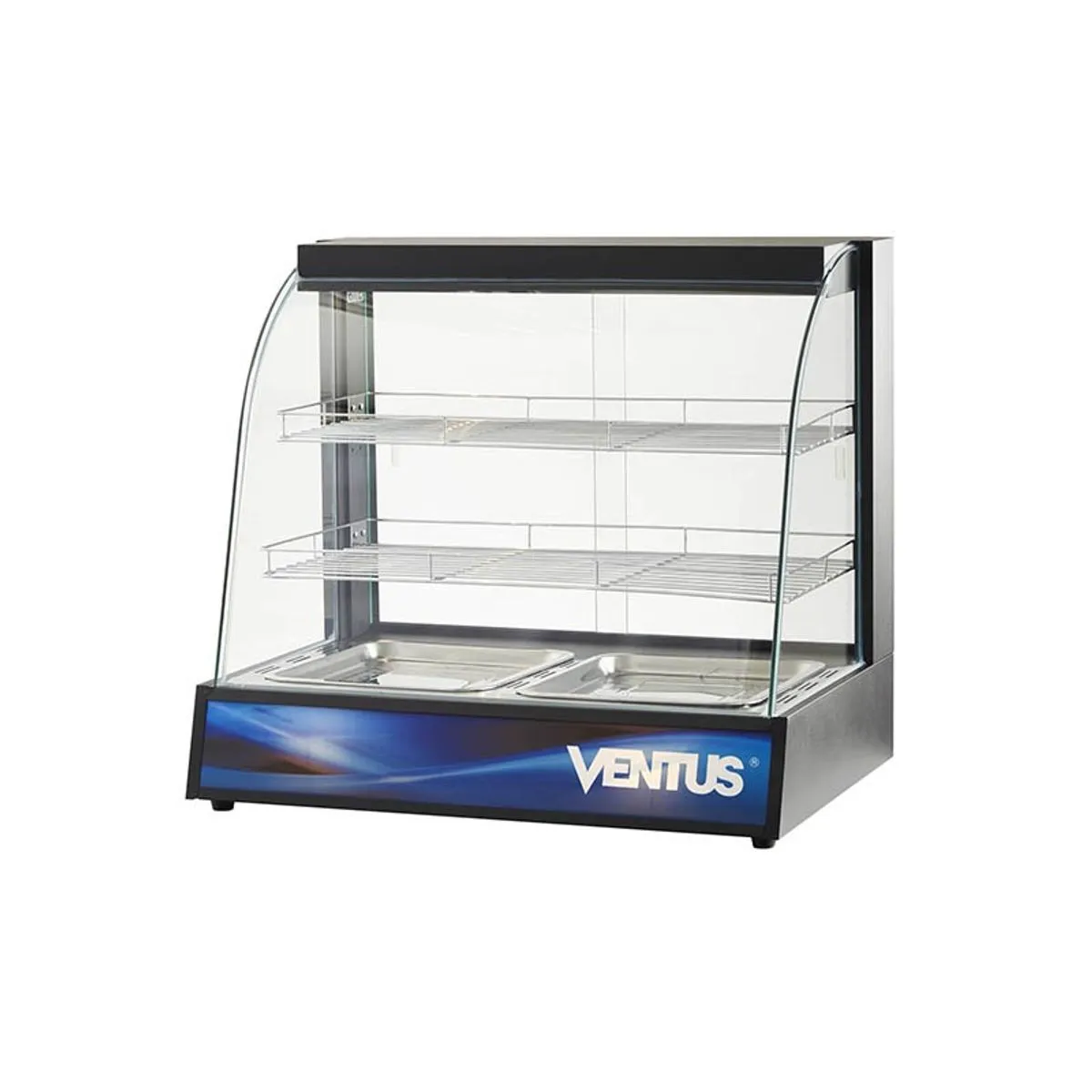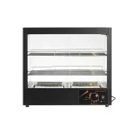 Conserva tus alimentos calientes y bien presentados con esta vitrina mantenedora de calor, ideal para panaderías, cafeterías, estaciones de autoservicio y locales de comida rápida.